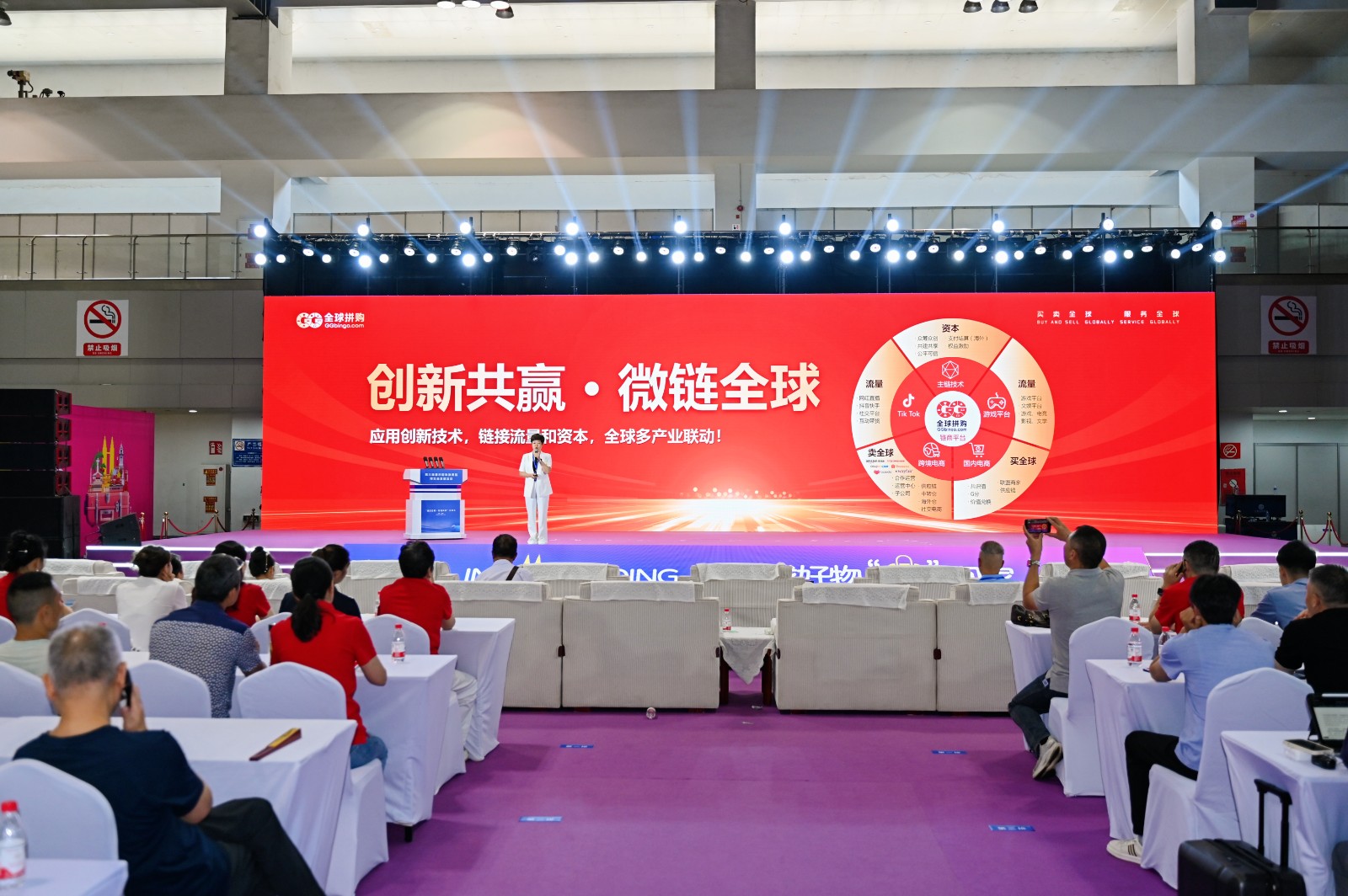 王总在演讲中深入阐述全球拼购创新商业模式的独特魅力与强大活力,重点剖析跨境产业生态链赋能的关键环节与实践路径,讲述全球拼购如何助力合作伙伴、拓展市场、链接价值,赢得现场观众的广泛认可与赞誉,进一步提升全球拼购在跨境电商行业内的影响力与话语权。